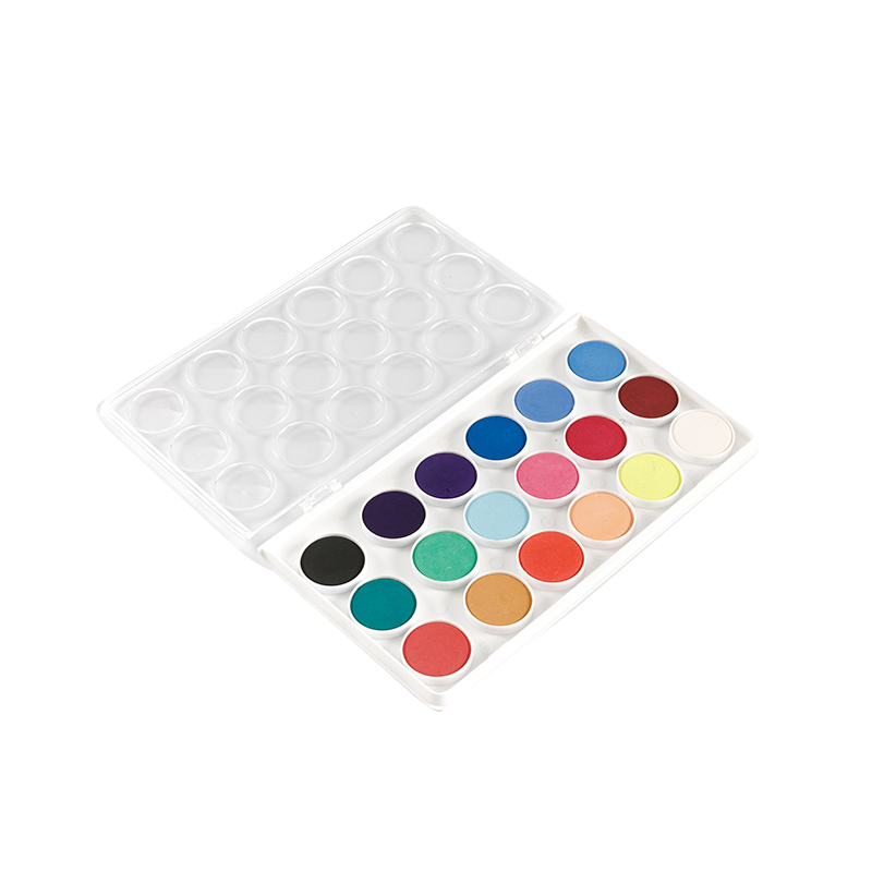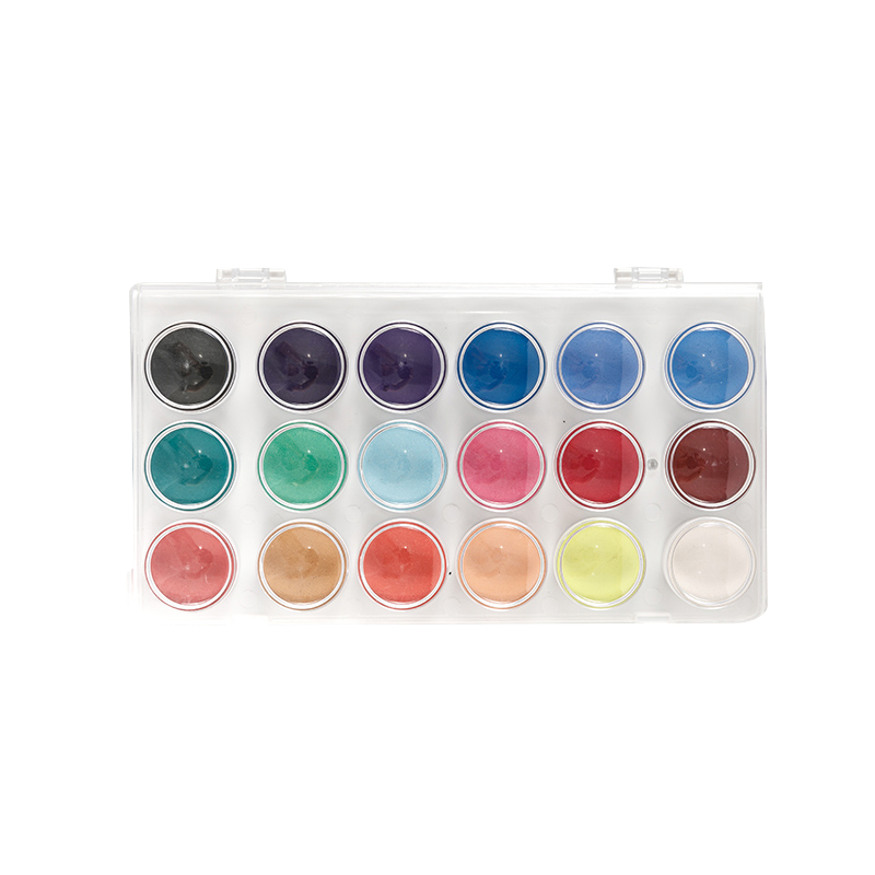वॉटर कलर्स पेंट सेट हा तरुण कलाकारांसाठी 18 रंगांचा उत्तम पॅक आहे. शरीरासाठी स्वच्छ प्लास्टिक, आधुनिक गोलाकार आकार जो धरण्यास सोपा आणि वापरण्यास सोयीस्कर आहे. पेंट पाण्याने पातळ केले जाऊ शकते ज्यामुळे ड्रॉइंग किंवा पेंटिंगमध्ये सहज भरण्यासाठी स्वच्छ, समृद्ध रंग मिळू शकतात.