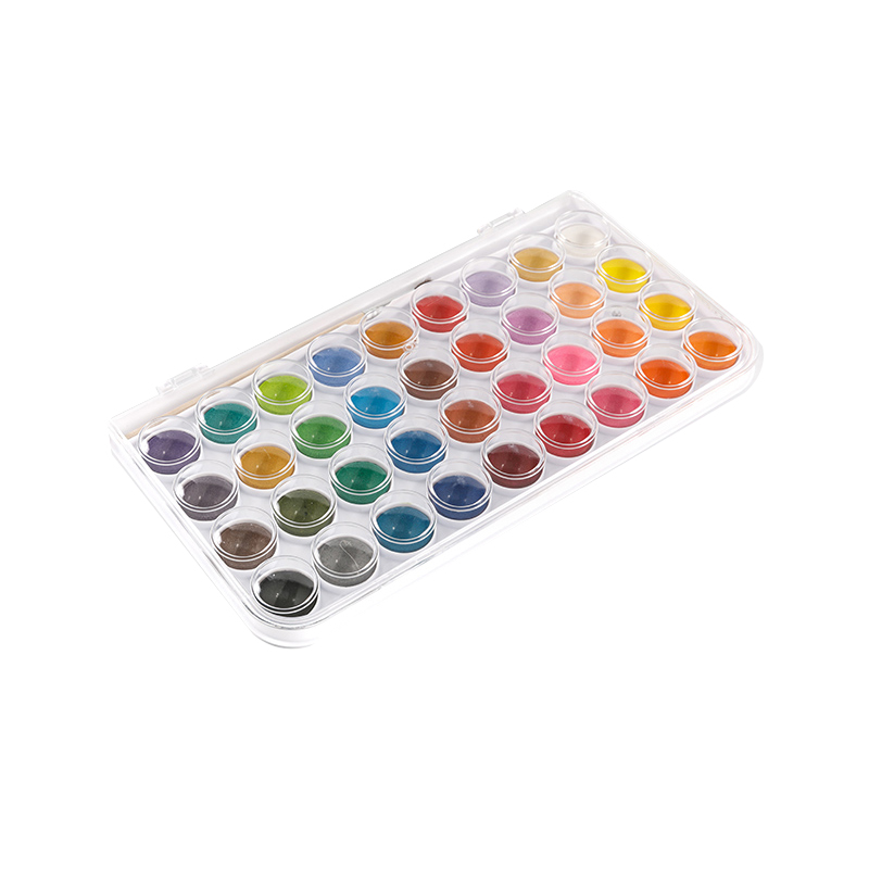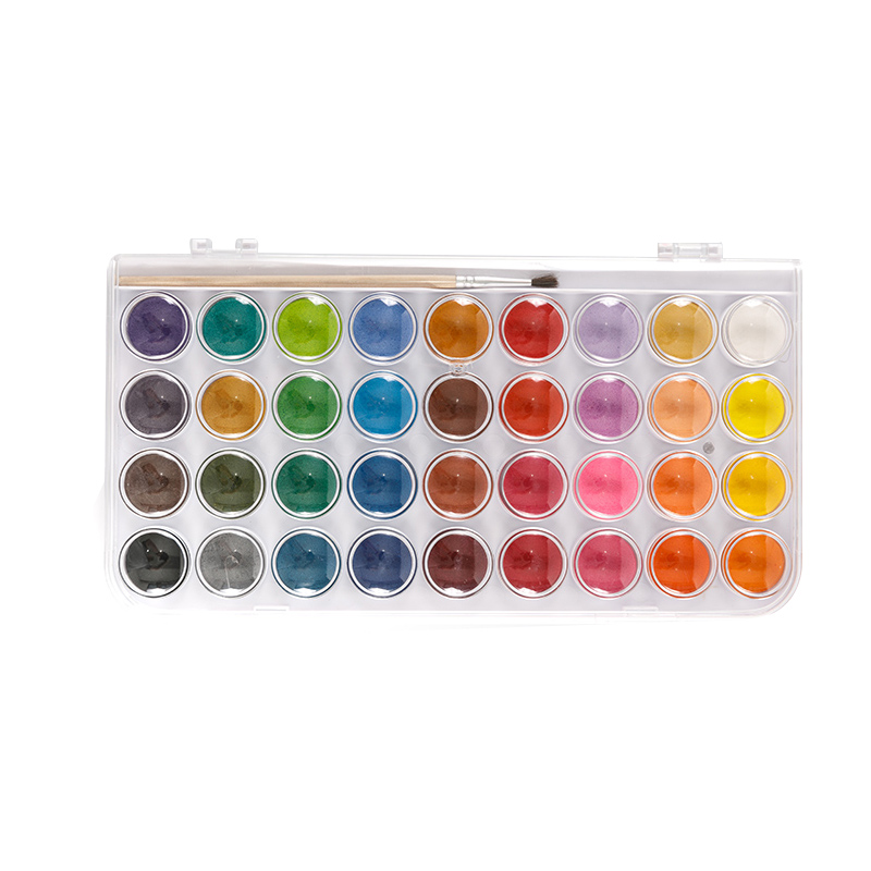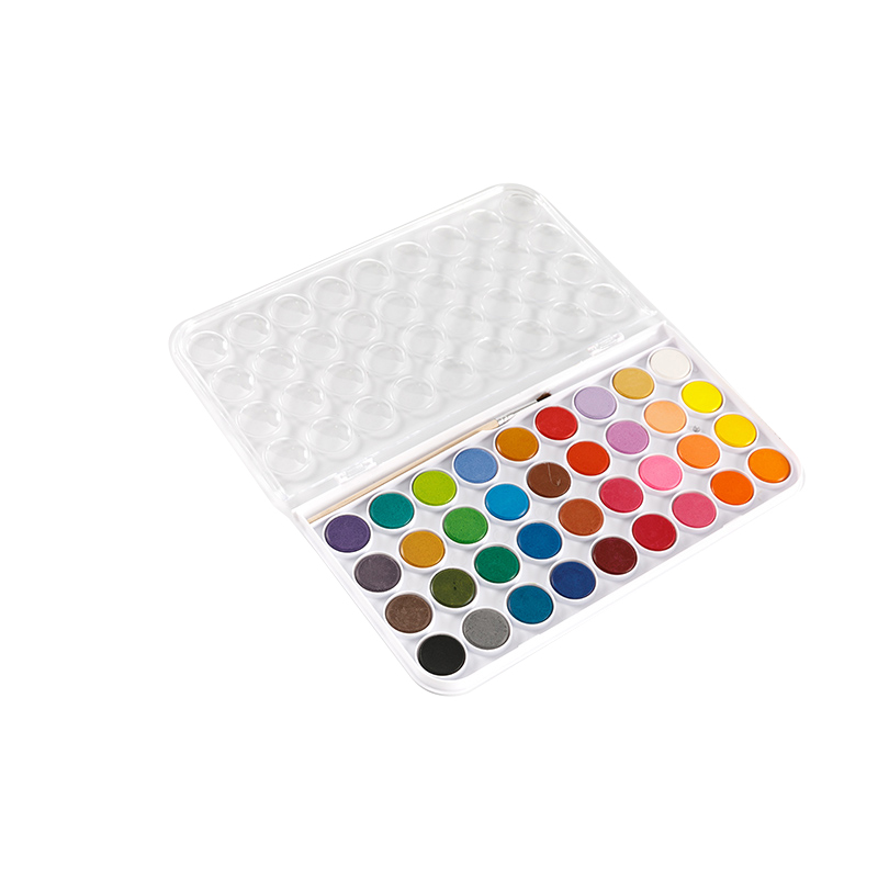 36 वॉटर कलर पेंट्सचा हा संच रंग आणि रंगद्रव्यांची विस्तृत श्रेणी प्रदान करतो, जे जलरंगाच्या सर्व गरजांसाठी योग्य आहेत. ते मजबूत, अर्ध-ओलसर आहेत आणि उच्च दर्जाचे वॉश तयार करतात.